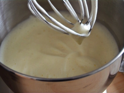 Combine the wet ingredients: Break 3 eggs into a large bowl and beat them with a balloon whisk or electric mixer until fluffy. Add the warmed milk and 360 ml (1 ½ cups) revived sourdough starter and mix gently.